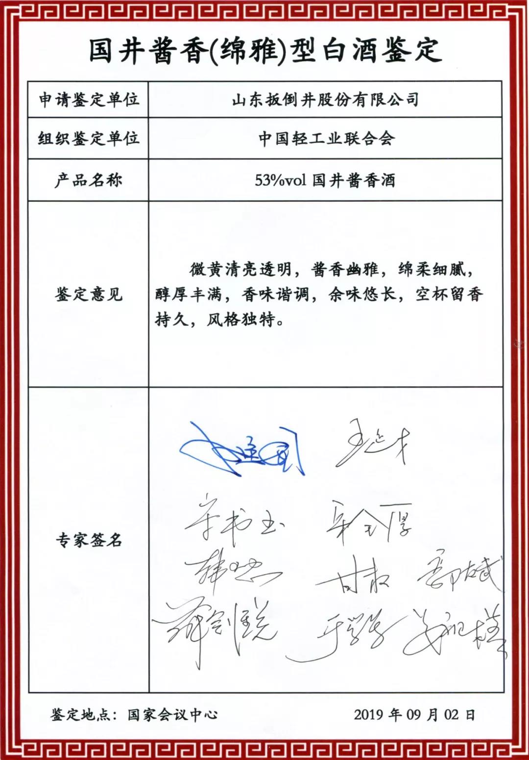 中國工程院院士、北京工商大學(xué)校長孫寶國擔(dān)任鑒定委員會主任,中國酒業(yè)協(xié)會理事長王延才擔(dān)任鑒定委員會副主任。中國輕工食品工業(yè)管理中心主任于學(xué)軍,中國酒業(yè)協(xié)會副理事長兼秘書長宋書玉,國家食品質(zhì)量監(jiān)督檢驗(yàn)中心主任、全國白酒標(biāo)準(zhǔn)化技術(shù)委員會秘書長宋全厚,仁懷酒業(yè)協(xié)會會長、原茅臺集團(tuán)總工呂云懷,中國科學(xué)院微生物研究所信息中心主任馬俊才,中國農(nóng)業(yè)大學(xué)食品學(xué)院副院長韓北忠,天津科技大學(xué)生物工程學(xué)院院長肖冬光,四川大學(xué)教授周榮清,中國酒業(yè)協(xié)會副秘書長甘權(quán),山東省白酒協(xié)會會長姜祖模,山東省食品工業(yè)協(xié)會會長郭友武,山東省糖酒副食品商業(yè)協(xié)會會長薛劍銳等業(yè)內(nèi)資深專家、教授擔(dān)任鑒定委員會委員。
